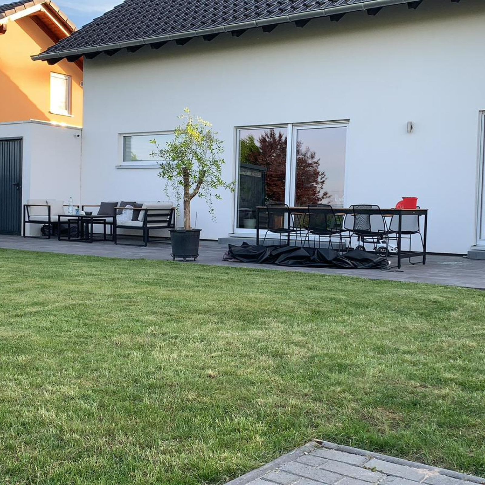 Aus dem Wohn und Esszimmer, gibt es einen direkten Zugang in den ca. 400 m² großen Garten. Der Garten ist umlaufend mit einem Zaun abgesichert. Draußen haben die Kinder auch eine Möglichkeit zum Krabbeln, Toben, Klettern und Spielen. In diesem Jahr, werden wir auch einen Spielturm und ein Spielhaus bauen lassen, das TÜV geprüft und sichergestellt wird.